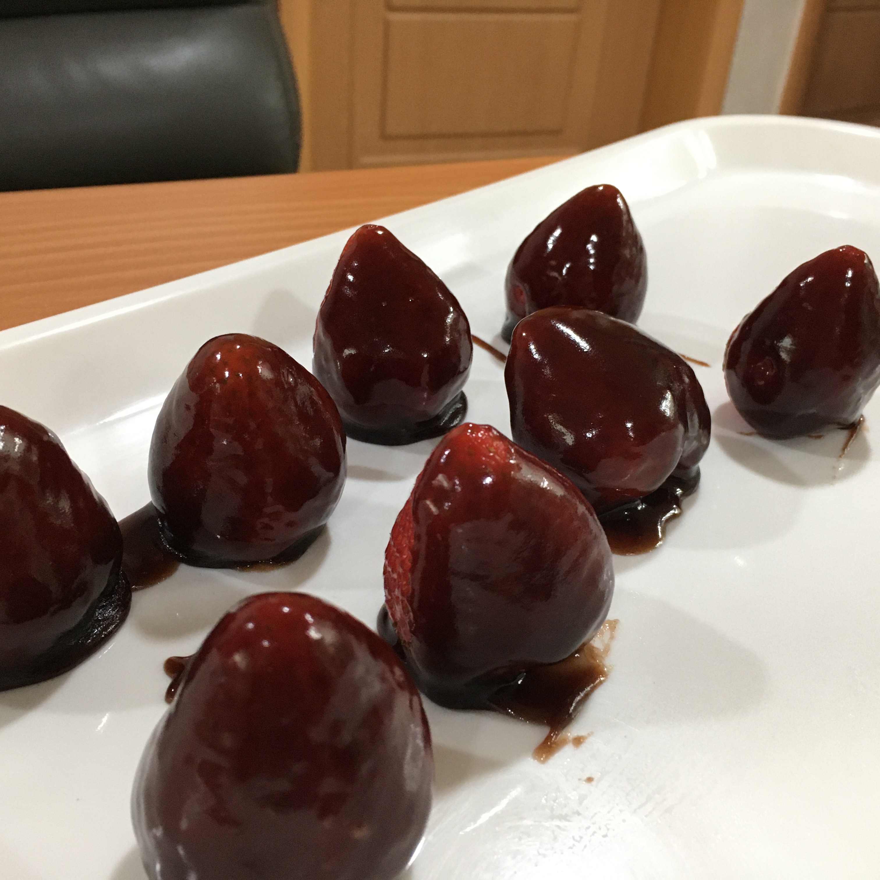 잘 녹은 연양갱을 굳기 전에 딸기에 묻혀서 굳혀주세요.